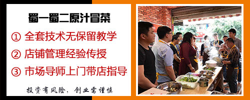 加盟蜀一蜀二冒菜餐飲項目,總部會有專業的服務團隊,進行一對一服務。產品品種有保障,給品牌發展提供有力的條件。所以這個品牌贏得消費者認可,還有加盟商的認可。如果您對蜀一蜀二冒菜加盟有興趣, 可以預留你的聯系方式,我們工作人員會及時幫您解決您的疑問。
